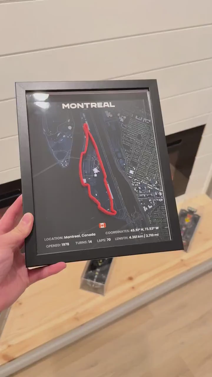 A bold, minimal 3D render of Circuit Gilles Villeneuve designed to bring race-weekend energy into your room.