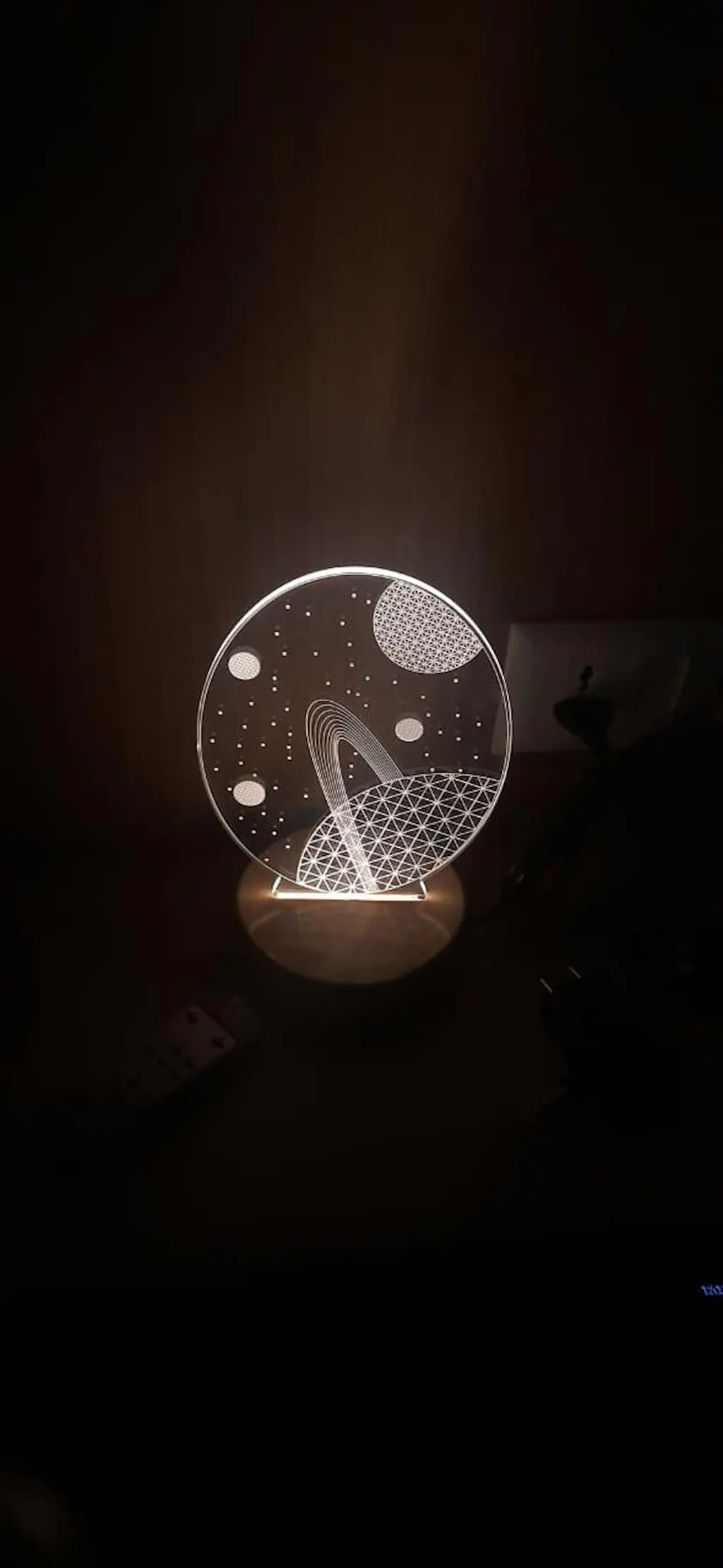 Introducing our one-of-a-kind lamps that will add pizzazz and excitement to your room! Our lamps are not your typical, boring lights. Instead, they bring style, creativity, and a whole lot of fun to any space. Made with eco-friendly LED lights, these lamps are so unique that you won't believe they're actually flat (2D) instead of 3D! The lamp is made from a thin sheet of acrylic glass and is laser engraved. Simply insert it into the sturdy wooden base, and voila - it lights up like magic! No wonder these lamps are all the rage in the market.
